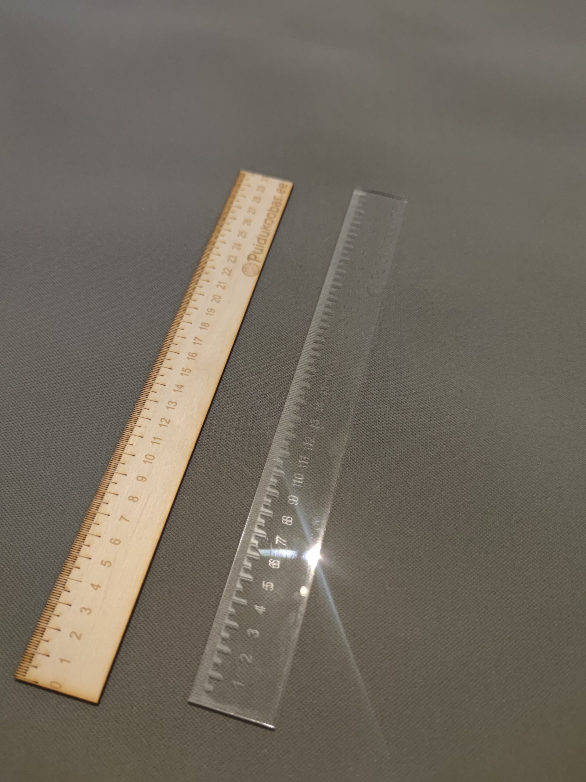 3x35x300 mm joonlaud vineerist, tammest või plexiklaasist. Vajadusel saame graveerida sobiva teksti või logo.